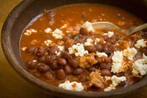 Santa Maria Pinquitos with a wee bit of crumbled breakfast sausage, some tomato sauce, oregano Indio and farmer cheese. I'm trying to use meat more as a flavoring. The beans...