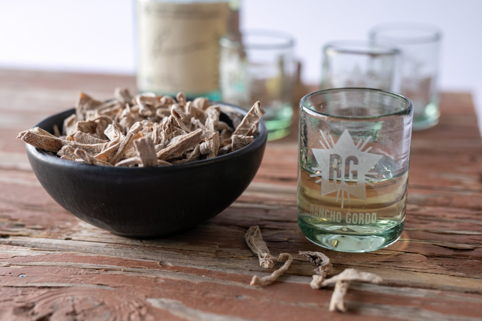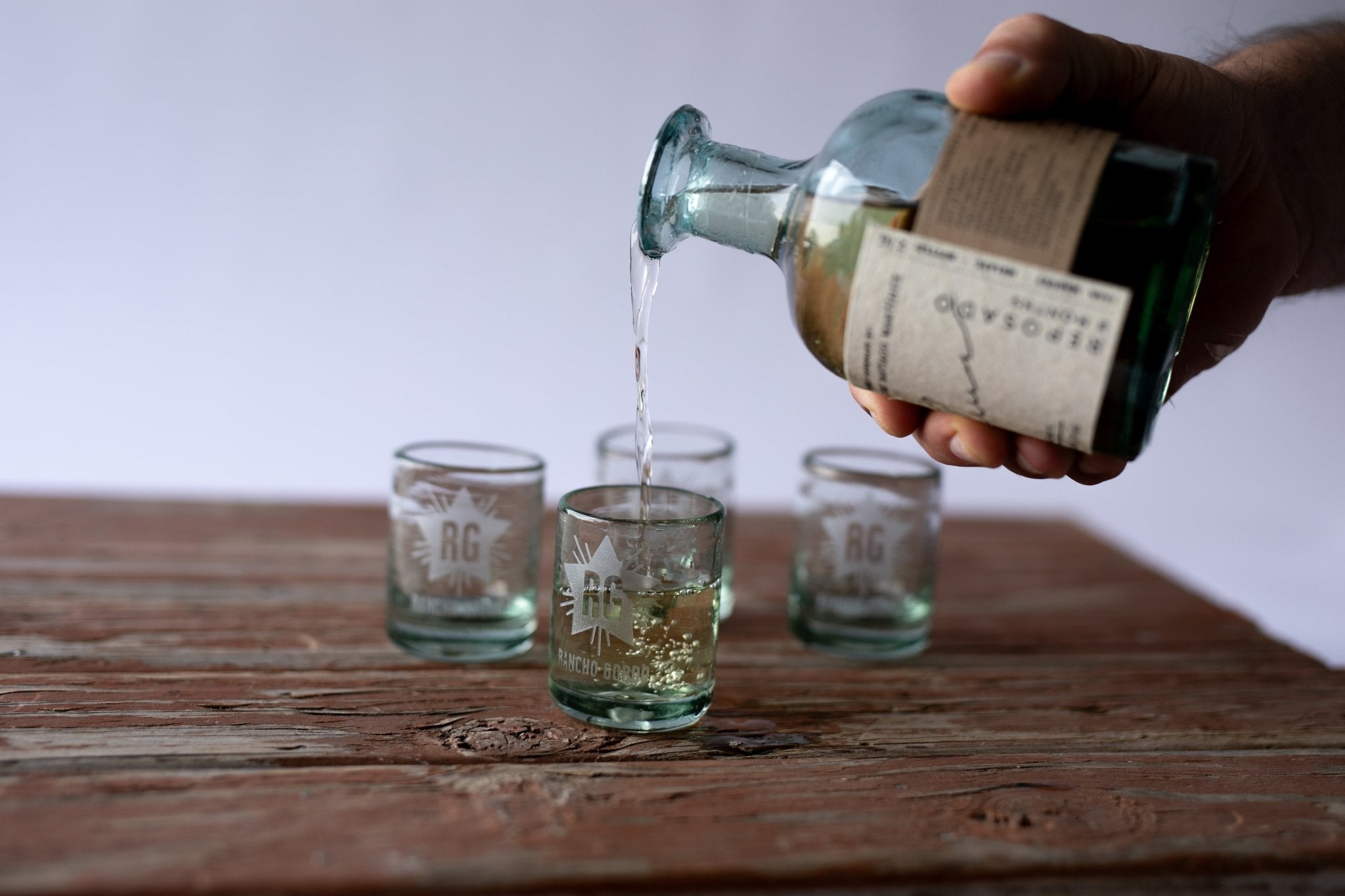 Take Rancho Gordo with you whenever you open a bottle with these handblown caballitos, perfect for mezcal, tequila, or whatever your pleasure.