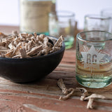 Handblown recycled glass with a sand-blasted Rancho Gordo logo makes this about the most welcoming shot glass you could ask for. A set of four is step one for a fun party. Serve with a bowl of Xoxoc Salty Xoconostle Strips for the perfect chaser.