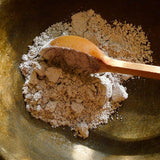 Toasted heirloom blue corn is ground with canela and piloncillo for making a slightly sweet, rich drink.